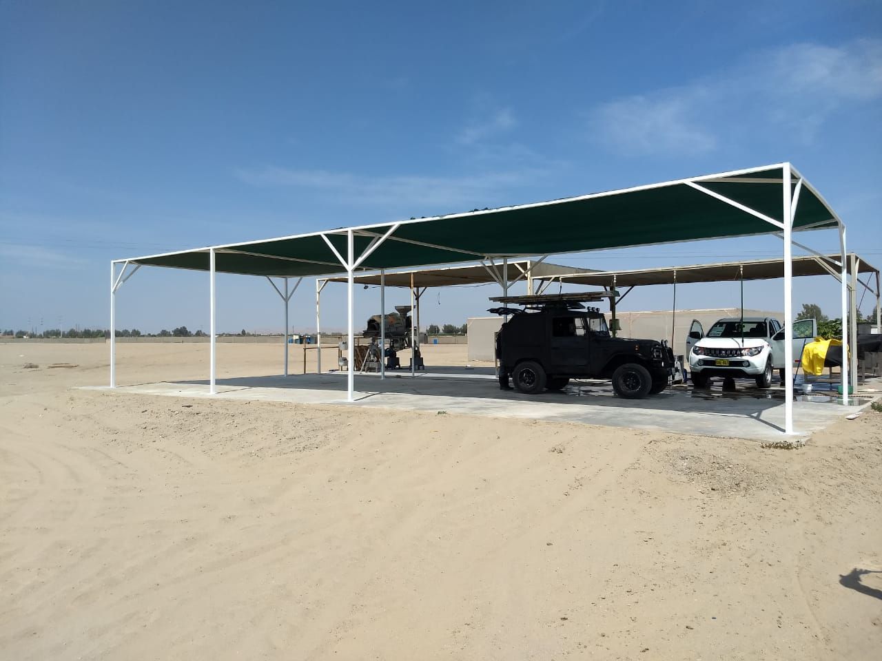 almacenes, packings, comedores, enmallados, portones, techos, casetas, rampas, parqueo de maquinarias, lozas para lavado, sombras.